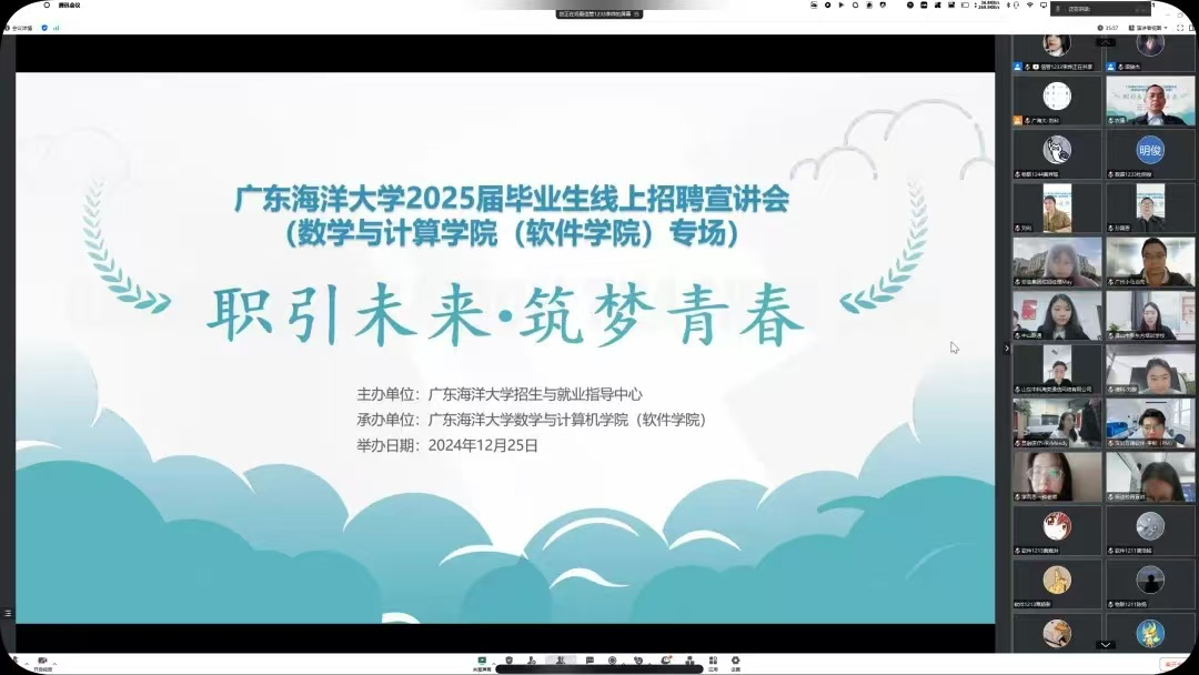 专场校企交流会暨2025届毕业生线上招聘宣讲会,会议由学院正处级辅导员、党委副书记农康主持,共计有十余家企业,二百余名学生参加。