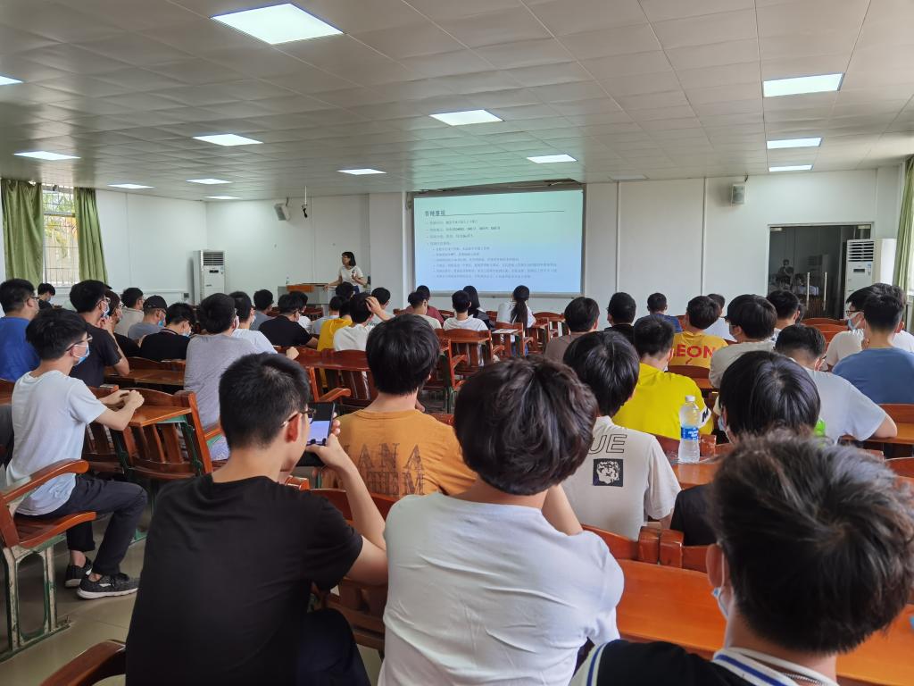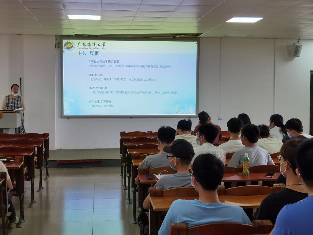 2021届毕业生年级大会在二教A103室召开,软件系副主任刘桃丽、辅导员张艺、赵鸿洲和2021届毕业生参加会议。