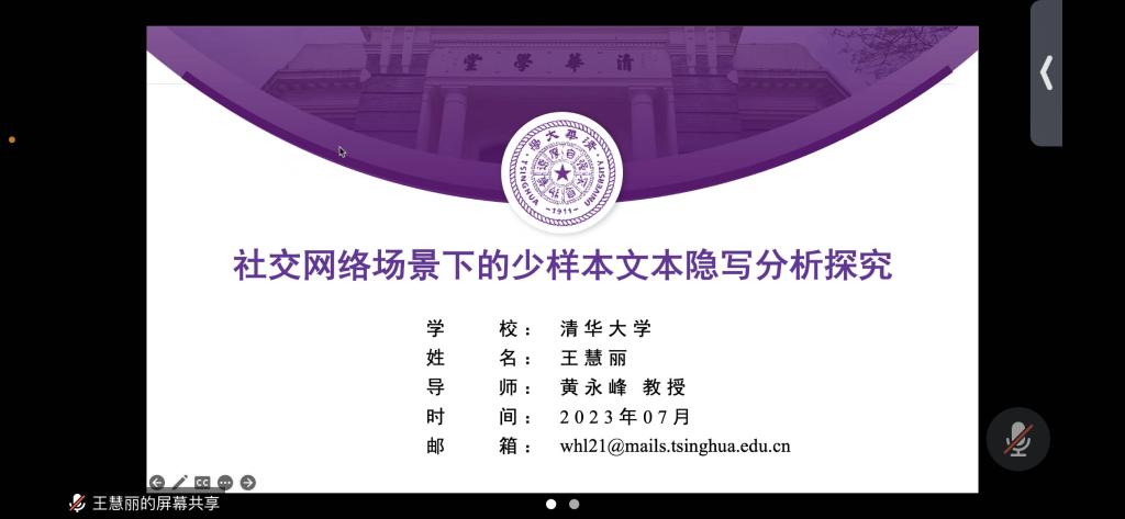 2023年广东省“多媒体信息安全”研究生暑期学校由广东省学位委员会、广东省教育厅主办,H动漫 承办,广东省研究生教育创新计划项目(No.2022SQXX_020)资助,旨在进一步加强省内外高校交流,更好地学习多媒体信息安全研究的发展前沿,特别是信息隐藏、加密、隐写、水印、取证等。本次研究生暑期学校充分利用研究生(博士、硕士)教育的优质资源,为研究生搭建高水平的学习交流平台,拓宽研究生的学术视野和科研思路,提高研究生的创新意识和科研能力,促进优质教学资源共享。举办期间,组织学员参观考察H动漫 有关实验室、水生博物馆、中西区校园文化等活动,取得良好的效果。7月28日上午进行闭幕式,由H动漫 黄小玲老师主持,她感谢大家对2023年广东省“多媒体信息安全”研究生暑期学校的大力支持,期待未来有机会更进一步合作和交流。