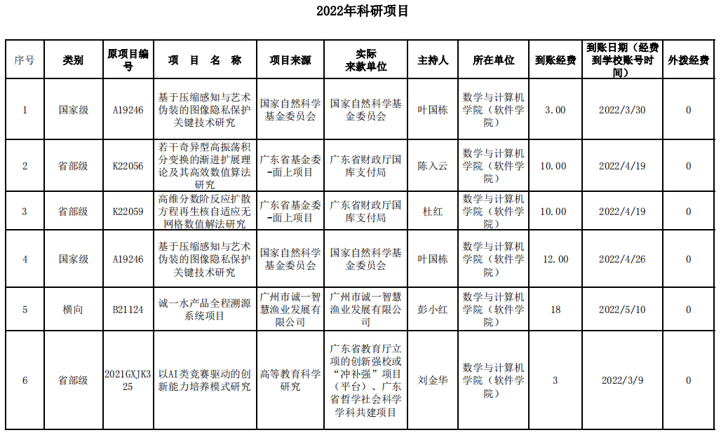2022年科研项目