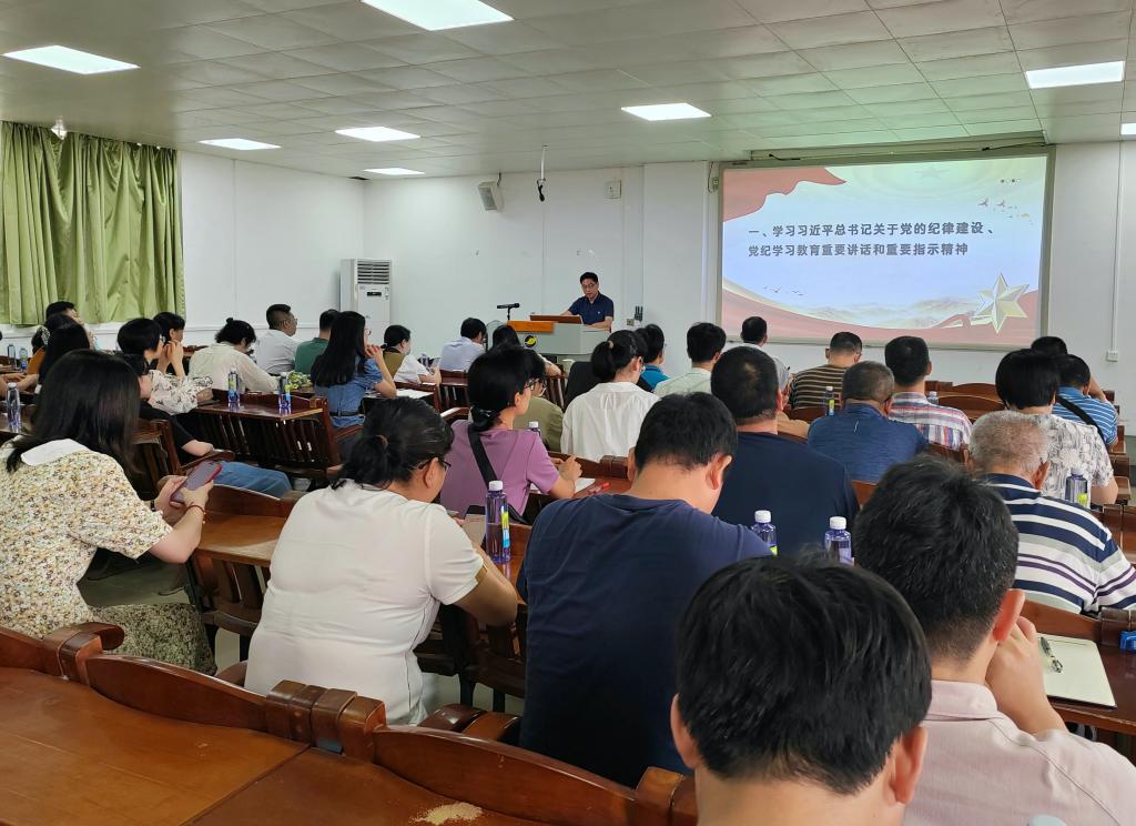 根据党纪学习教育工作部署,4月24日下午,我院在明德楼A103报告厅召开党纪学习教育专题学习暨2024年全面从严治党工作会议。学院全体领导干部、教师党员参加学习,学院党委书记龙俊以《学纪 知纪 明纪 守纪》为题作专题报告。