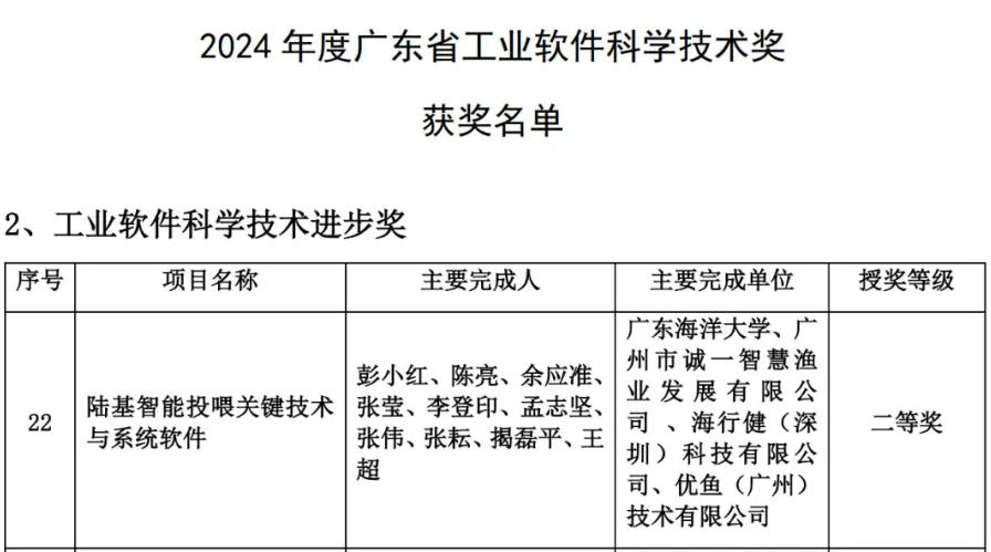 彭小红教授作为第一完成人的成果“陆基智能投喂关键技术与系统软件”荣获科学技术进步奖二等奖。