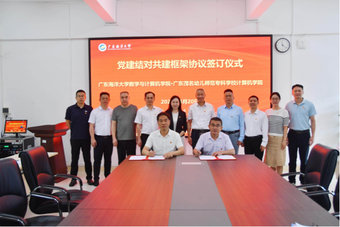在与会人员见证下,龙俊与茂名幼儿师范专科学校计算机学院党总支书记黎家裕共同签署党建结对共建框架协议。双方表示将以组织共建等为抓手,强化理论武装、推动协同提升。