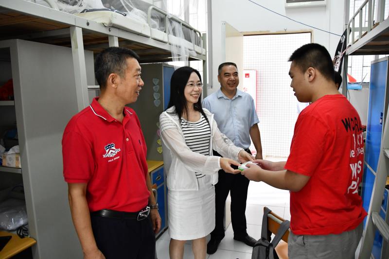 彭小红院长、谢仕义书记带领周荣伟副书记、陈入云副院长以及院办主任和辅导员一行,到海思、海霞等宿舍看望了已经返回学校的学生。学院领导仔细询问了同学们回校路途是否顺利、回到宿舍后是否已经安排妥当,叮嘱同学们要按照学校的部署和要求做好疫情防控措施,并检查了学生宿舍的安全情况,对个别宿舍停放电动车的情况要求立即纠正妥善处理。