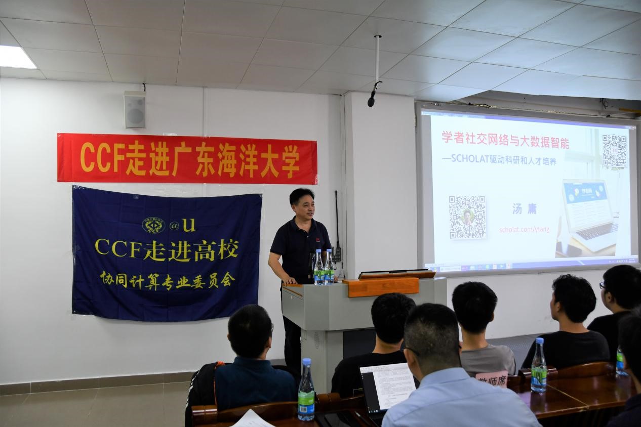 1118日下午,应我院邀请,CCF协同计算专委主任、广东省计算机学会常务副理事长、华南师范大学计算机学院院长汤庸教授,CCF协同计算专委副秘书长、广东工业大学计算机学院副院长刘冬宁教授在湖光校区第二教学A103会议厅分别作了题为“学者社交网络与大数据智能”、“人工智能与角色协同计算”的学术报告。报告会由学院院长彭小红教授主持,学院部分教师及学生共150余人参加了报告会。