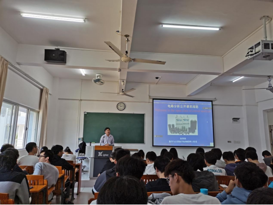 徐老师是省级在线开放课程《电路分析》项目负责人,围绕授课主题作了精心准备,教学形式丰富,授课内容充实,课堂互动积极,教学效果好。上课开始,徐老师先回顾了上节课内容,通过小视频讲解,利用学习通的功能,让学生深度参与到教学中,充分调动学生的积极性。教学中紧贴重点《电路分析》的“全响应”知识,理论与实例相结合,引用了手机充电的案例,让学生从实例中理解全响应概念,巧妙地引入最新发展技术,扩展和启发学生深入思考相关知识,并有机融入课程思政元素。整个教学主题突出,思路清晰,逻辑性强,阐述问题简练准确,深入浅出,语言表达松弛有度,声情并茂,富有感染力,得到在场观摩教师的肯定与赞赏。大家一致认为徐老师的公开课在教学内容、教学方法以及教学效果等方面均取得了较好的预期效果,对学院课堂教学工作的推动具有一定的借鉴意义。