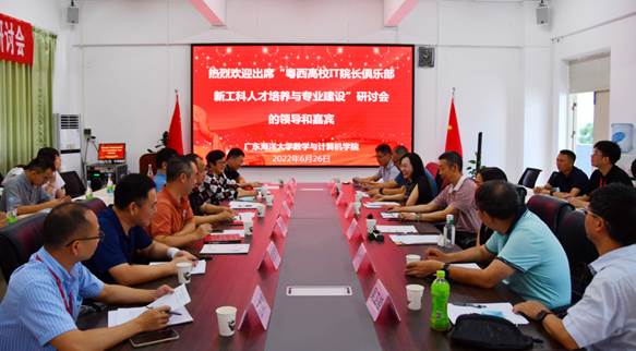 6月25-26日,由我院、湛江市计算机协会、广州腾科网络技术有限公司共同主办的“粤西高校IT院长俱乐部新工科人才培养与专业建设”研讨会在我院第二教学楼A座405会议室召开。出席研讨会的领导和嘉宾包括:我院党委书记谢仕义教授、院长彭小红教授,岭南师范学院计算机与智能教育学院院长杨俊杰教授、网络与信息技术中心主任赵法信教授、电子与电气工程学院副院长王树文教授、副院长桑海涛教授,广东石油化工学院电子信息工程学院院长孙国玺教授、计算机学院副院长张磊教授,H动漫