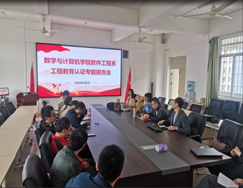 在明德楼A1404会议室召开工程教育专业认证专题报告会。会议由系主任陈小瀚主持,全系教师参加本次会议。